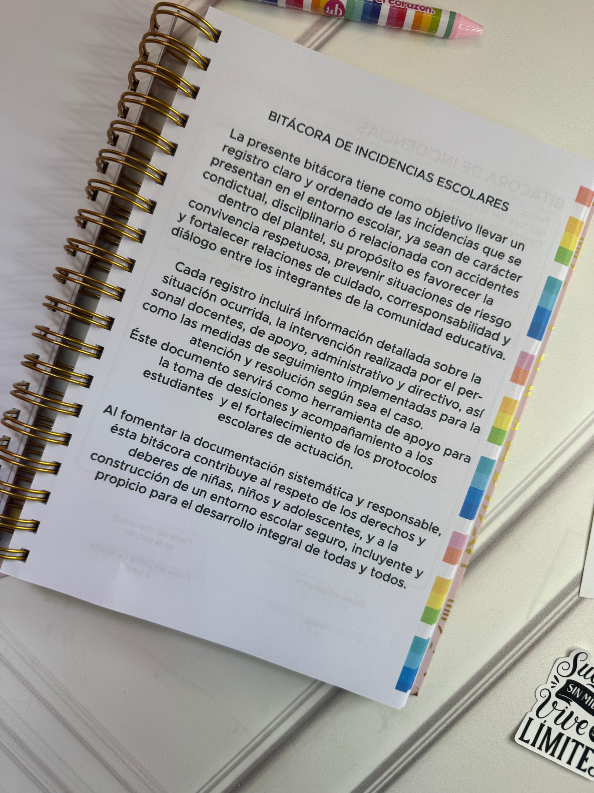 Una herramienta práctica, bonita, de excelente calidad y con los mejores diseños, pensada para ayudarte a registrar de forma ordenada y clara cualquier situación relevante en tu grupo.